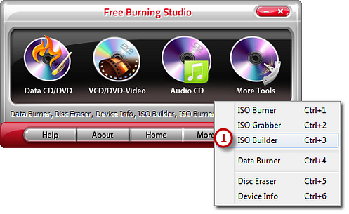 Launch Free Burning Studio. Click “More Tools – ISO Builder” to run the builder wizard.